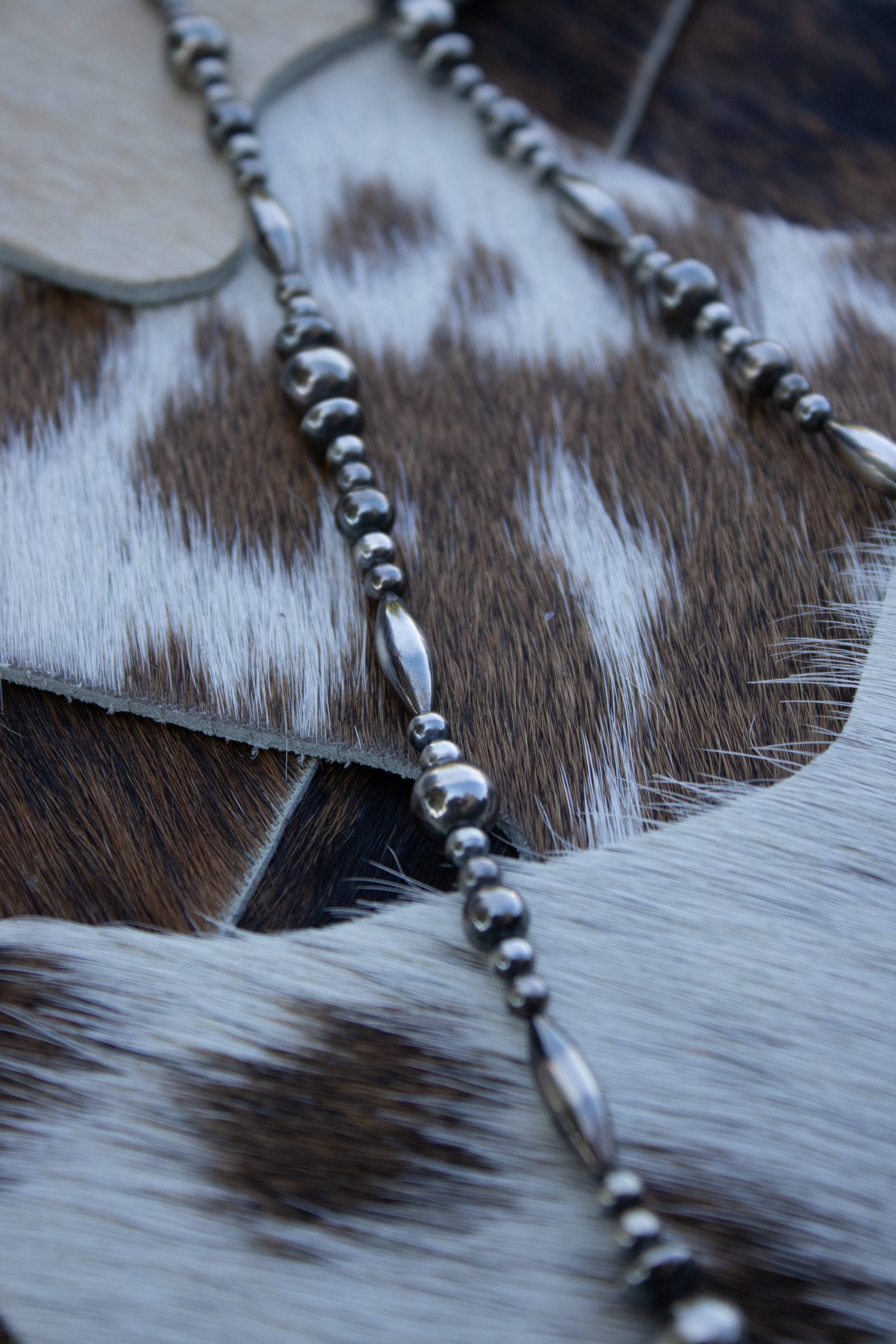 đâŻFeatures a striking blend of 4 mm, 6 mm, and 8 mm Navajo pearls, including saucer and oval-shaped beads for a bold, dimensional finish