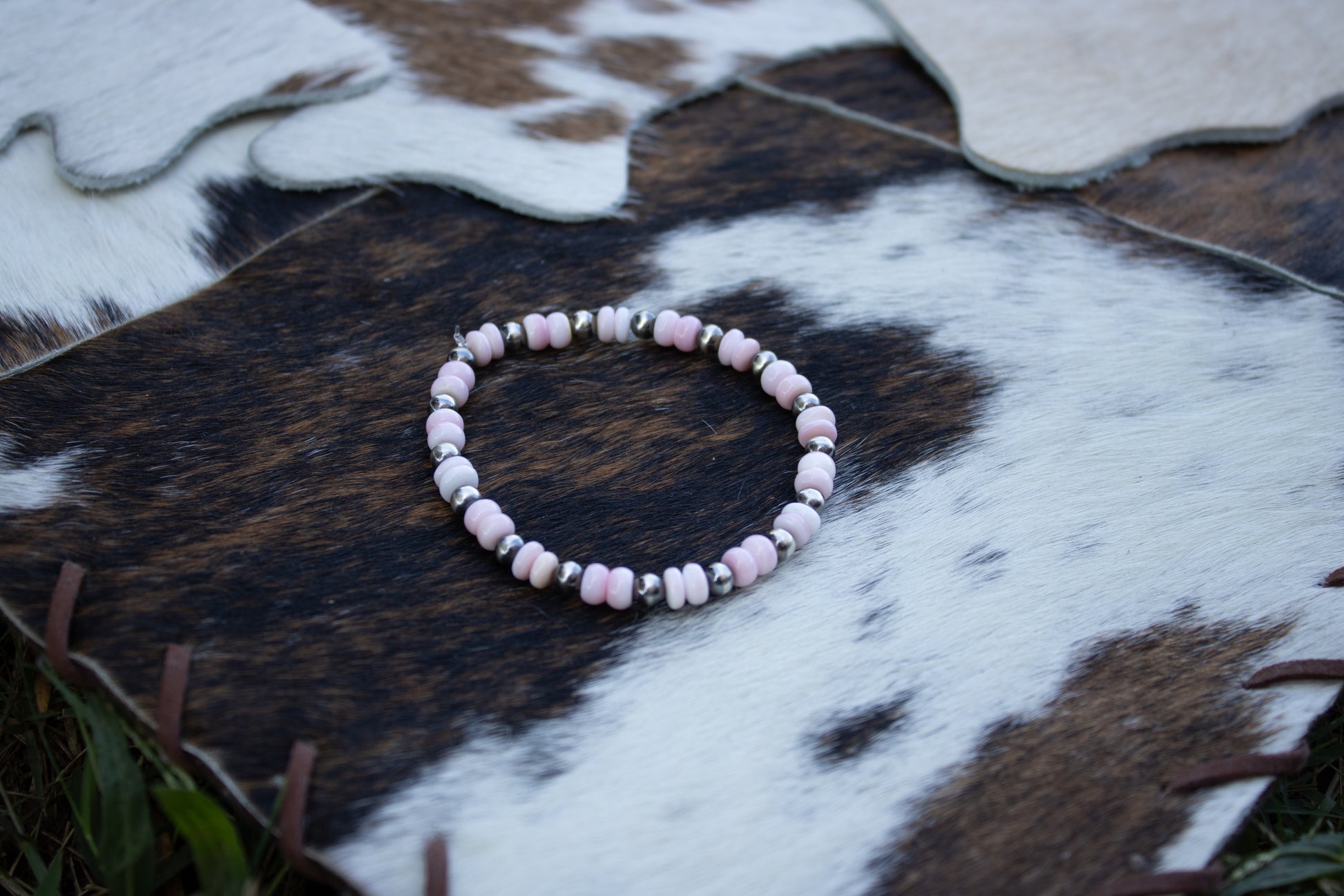 đâŻFeatures 5 mm Navajo pearls paired with soft pink conch beads.