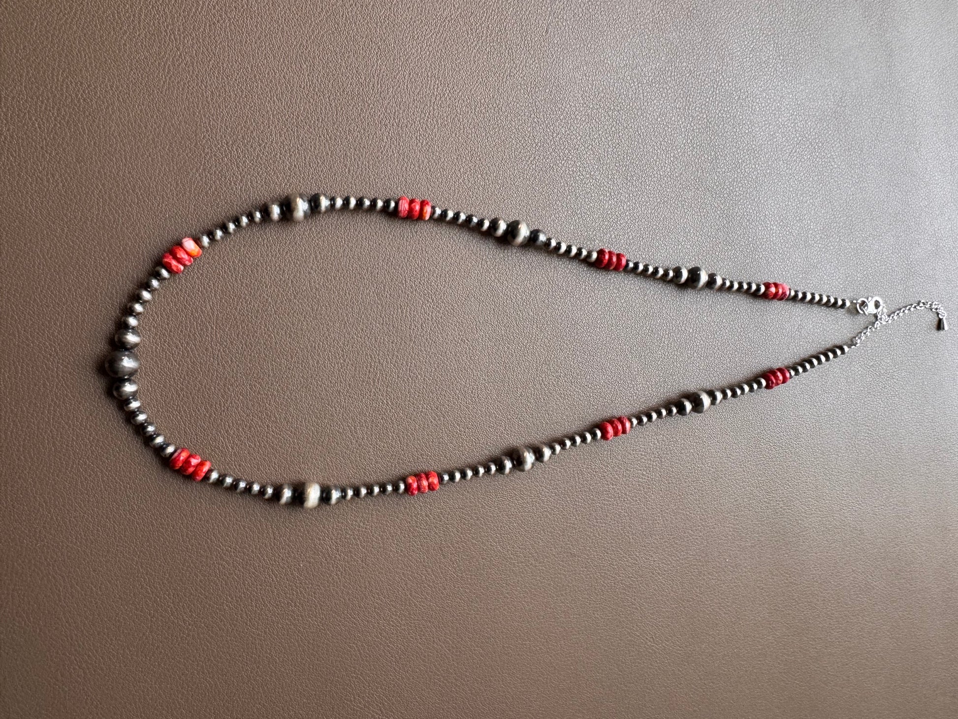 🔘 Details: Featuring red spiny oyster beads and a mix of 4mm, 6mm, and 7mm Navajo pearls, Red Fern is a bold, earthy piece with timeless Southwestern flair.